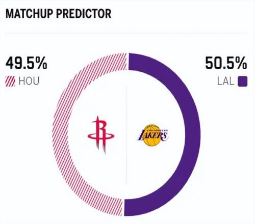 赛前,美媒ESPN对本场比赛进行了胜率预测,湖人胜率为50.5% ,火箭队胜率则为49.5% ,双方又回到同一起跑线。