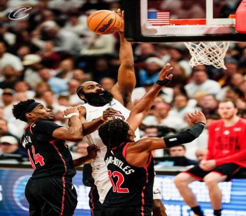 36岁的哈登出场时间是两支球队所有球员的最高,打到最后实在投不进球了,但仍然贡献了关键的防守。猛龙的锋线在这轮系列赛占据绝对优势,但哈登带来的季后赛经验,还是让骑士赢下了这场天王山。