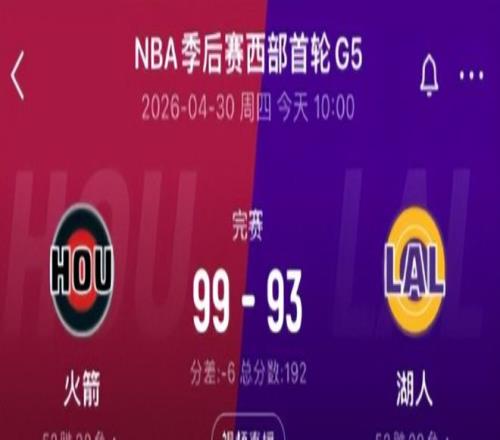 4月30日,坐拥主场之利且手握3-1领先优势的湖人,在斯台普斯中心迎来与火箭的西部首轮G5生死战。令人意外的是,球队最终以93-99惜败对手,被火箭连扳两城,系列赛悬念骤然升温,晋级形势由一片坦途转为胶着拉锯。