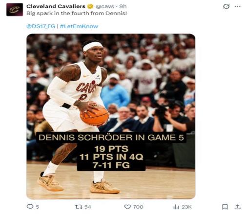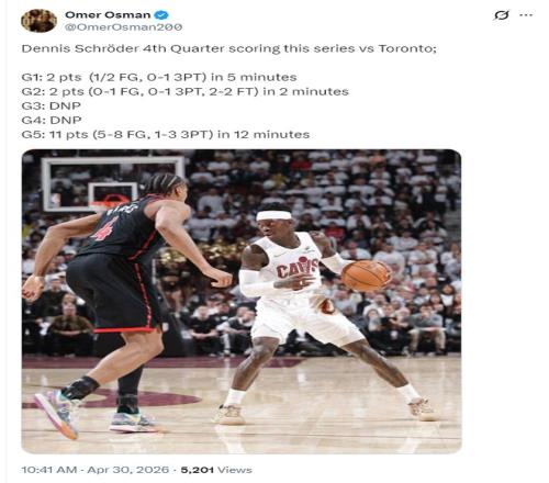 施罗德在G1末节只打5分钟,G2末节只打2分钟,G3与G4施罗德末节直接被DNP,但天王山之战他在末节打满12分钟拿到11分。