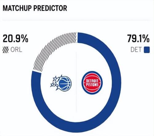 赛前,美媒ESPN对本场比赛进行了胜率预测,魔术队胜率还是仅有可怜的20.9% ,活塞胜率则依旧高达79.1% ,这胜率已经很说明问题了。